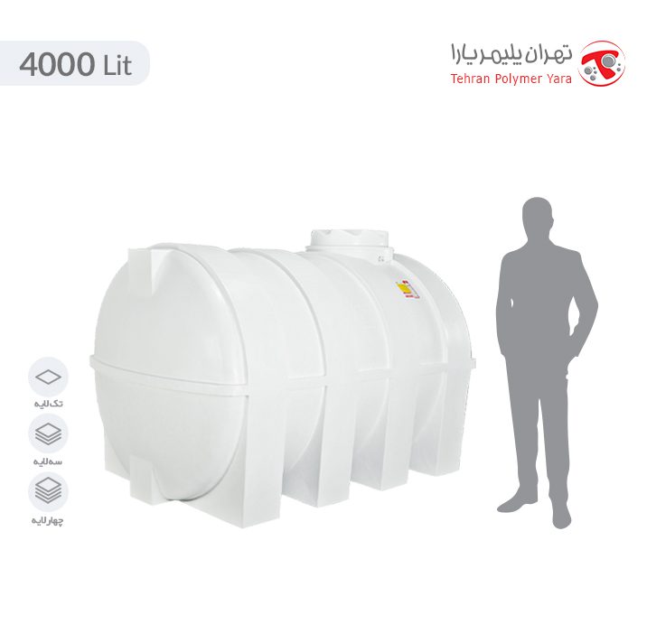 مخزن آب 4000 لیتری افقی (خوابیده) مناسب برای نگهداری طولانی مدت آب ساخته شده است. این مخازن از پلی اتیلن تأیید شده غذایی FDA / NSF ساخته شده و سه لایه بودن آن سبب جلوگیری از ورود نور خورشید و عدم ایجاد جلبک می شود. به همین خاطر آب در این مخزن هیچ تغییری از نظر مزه و طعم نمی کند. رنگ این مخزن سفید بوده و به صورت یکپارچه و بدون درز ساخته می شود. دارای طول 246، عرض 160 و ارتفاع 161 سانتیمتر می باشد. ضد زنگ بودن، وزن سبک و استحکام بالا، نصب و راه اندازی آسان، مقاومت در برابر خوردگی، بدون درز بودن و حمل و نقل آسان از دیگر ویژگی های شاخص این مخزن آب پلی اتیلن می باشد. همچنین باید اشاره کنیم که پشتیبانی و خدمات پس از فروش منبع آب ۴۰۰۰ لیتری شامل تامین و تعمیر قطعات، تعویض و تعمیر محصول، حمل و نصب می باشد.