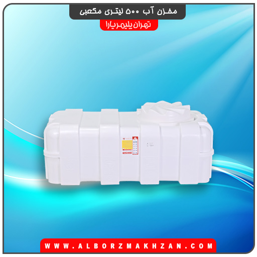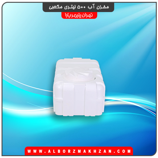 مخزن مکعبی شکل 500 لیتری از مواد اولیه درجه یک به عرض 79، ارتفاع 57 و طول 145 سانتیمتر و به رنگ سفید تولید شده و دارای تاییدیه بهداشتی و غذایی (Food Grade) از سازمان غذا و دارو و سازمان ملی استاندارد ایران می باشد. عموما مخزن های مکعبی برای نگهداری و ذخیره سازی آب شرب در ساختمان ها استفاده می شوند، با این وجود از مخزن آب 500 لیتری مکعبی برای نگهداری انواع مایعات غذایی، دارویی، شیمیایی و حتی سوخت نیز می توان استفاده کرد.